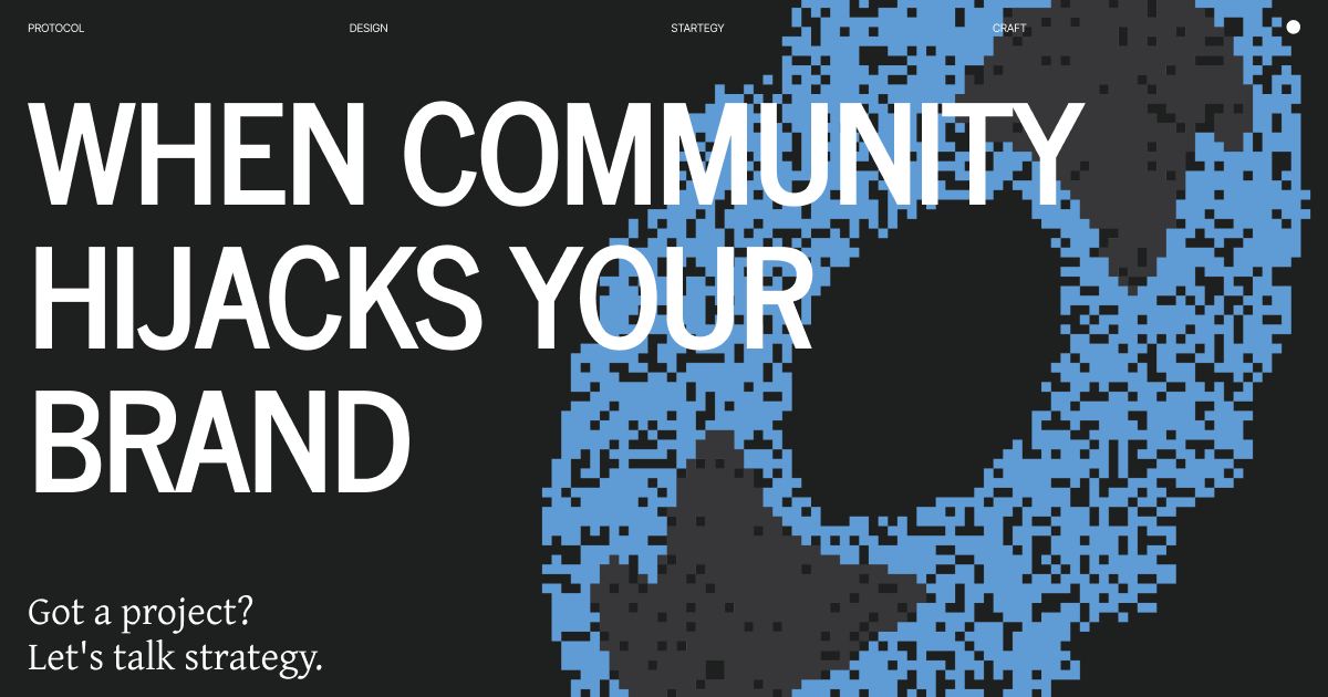 That’s an extreme example. But smaller versions happen to protocols all the time. You launch with one brand story. Your community decides you mean something else entirely. Now what.